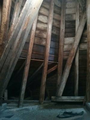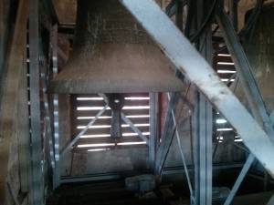 Die Kirche hat einen Glockenraum sowie ein Spitzdach aus Holz. Aus dem Glockenraum gehen jeweils zwei Öffnungen ziemlich genau in jede der vier Himmelsrichtungen. Die Öffnungen sind Schallführungen aus Holz versehen. Fotos siehe unten.